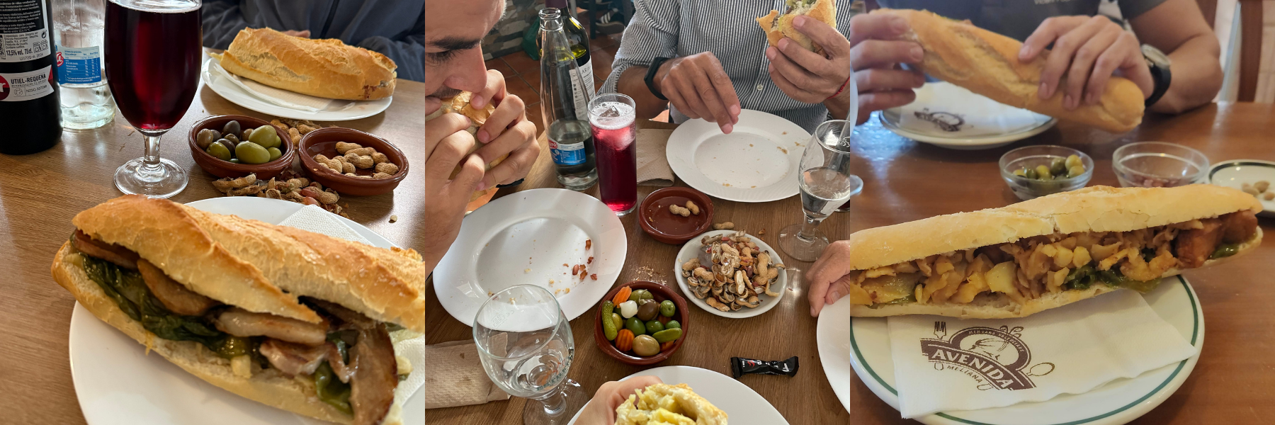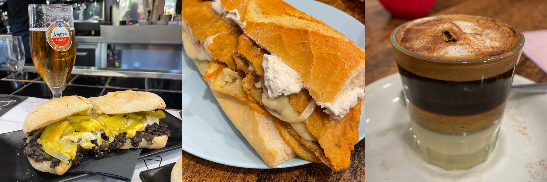 - een hele of halve bocadillo rijkelijk belegd met kip of worstjes gecombineerd met aardappel en pepers of met tortilla de patata. De broodjes kunnen ontzettend groot zijn. Dus ben je niet zo’n grote eter of wil je nog ruimte overlaten voor een lunch, bestel dan een halve (medio)!